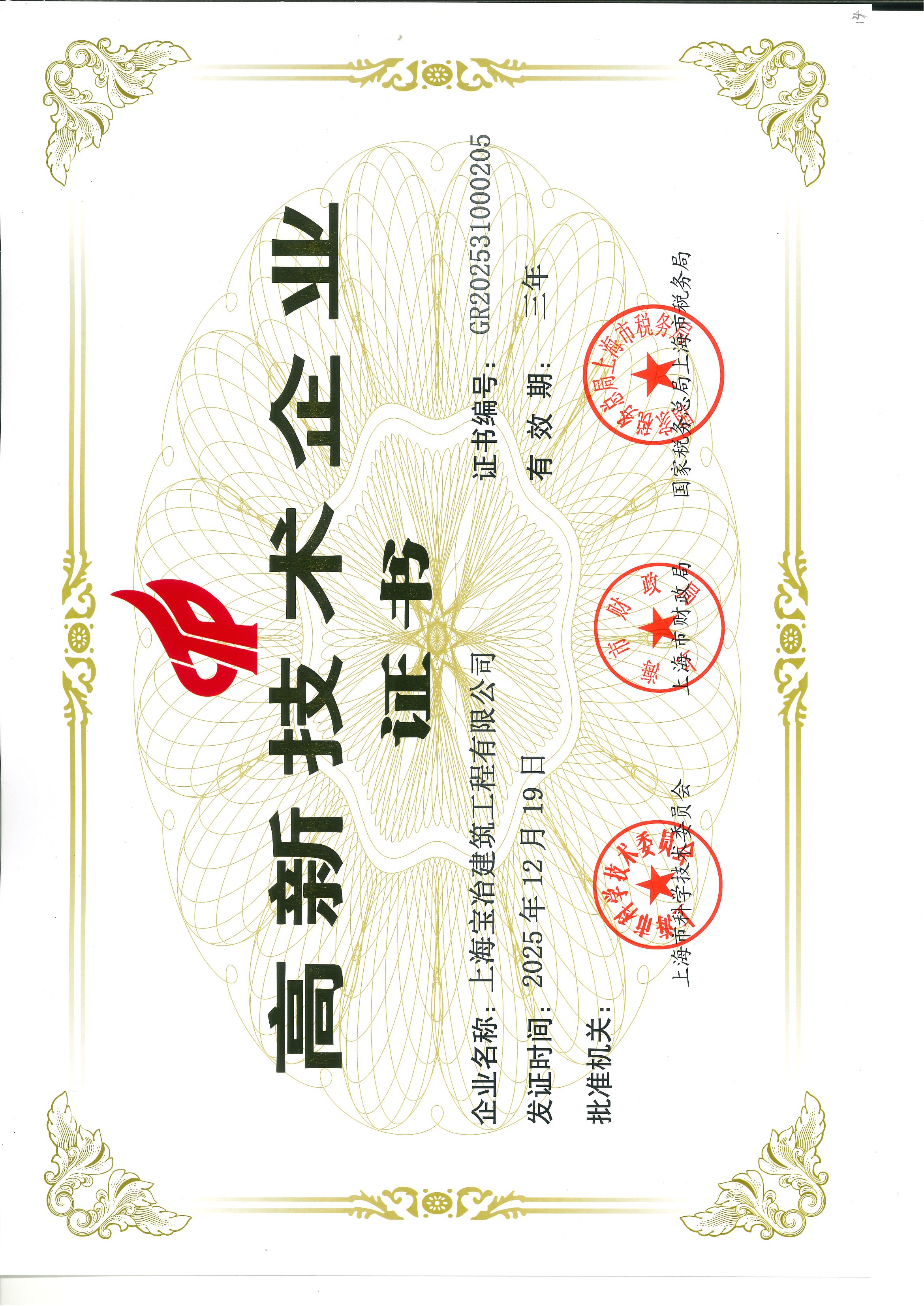 近日,高新技術企業認定管理工作小組傳來喜訊,上海寶冶建筑工程有限公司順利通過復審,再次榮獲“高新技術企業”認定。這標志著公司在技術研發與規范化管理方面持續獲得相關部門認可。