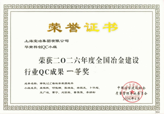 經(jīng)過激烈比拼,上海寶冶廣州分公司嶺頭舊改完成的QC成果《降低ALC墻板安裝損耗率》獲2026年度全國冶金建設(shè)行業(yè)QC成果一等獎。